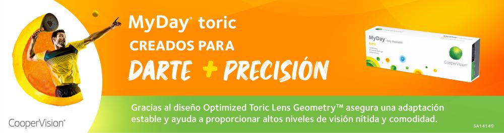 MyDay® toric es una lente de contacto de hidrogel de silicona de reemplazo diario para pacientes con astigmatismo**.